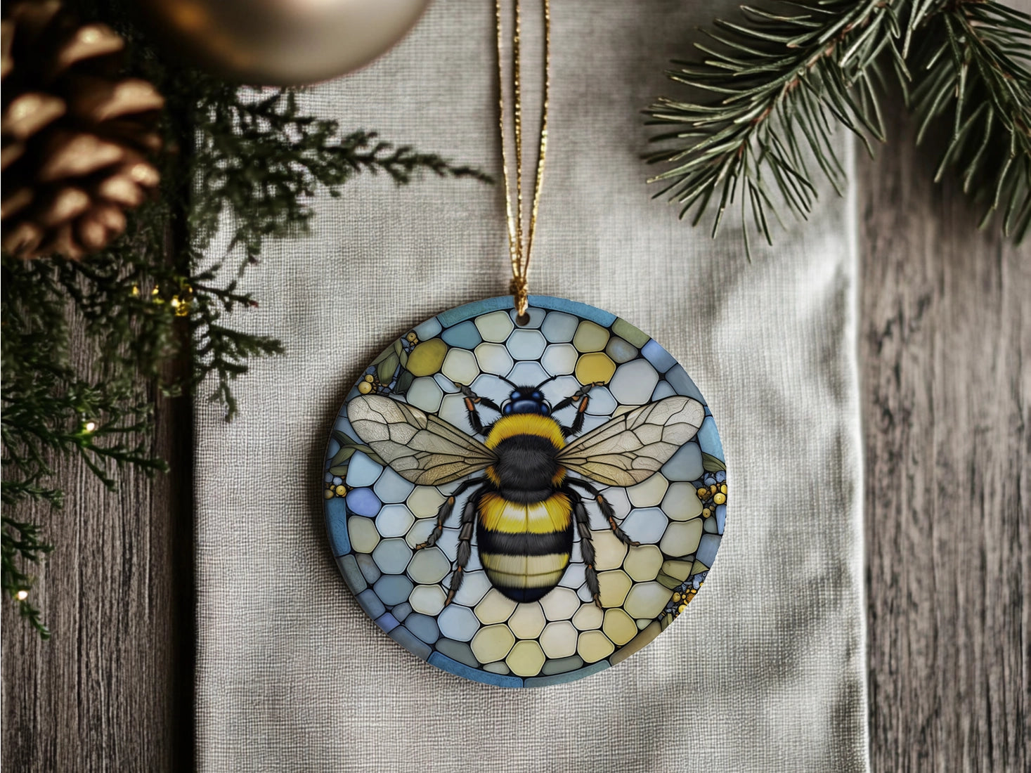 Ceramic Bee Ornament, Imitation Stained Glass, Keepsake Gift